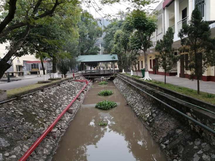 Đàn cá bơi lội giữa dòng kênh của Công ty