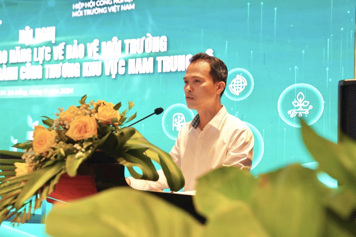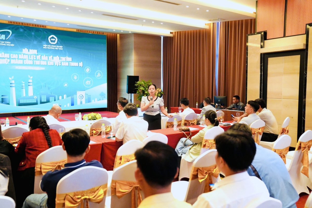 Bà Nguyễn Thị Liên, Chi cục Kiểm soát ô nhiễm môi trường miền Trung và Tây Nguyên tham luận và chia sẻ kinh nghiệm