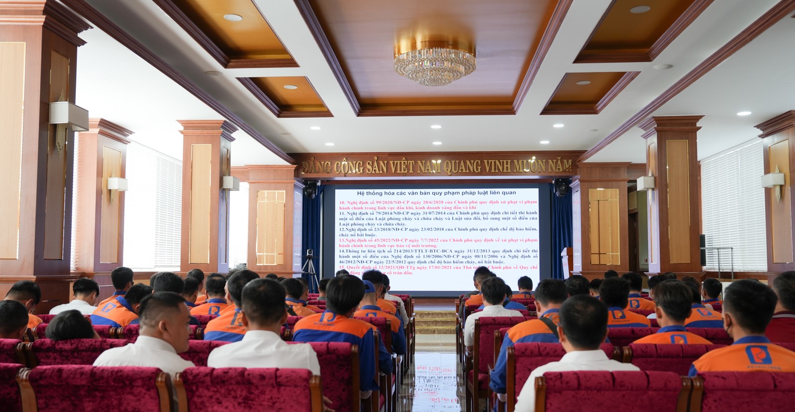 Các học viên nghe phổ biến về quy định lớp học, kiểm tra và các điều kiện nhận chứng chỉ (Ảnh Petrolimex)