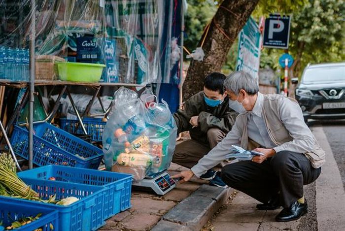 Đều đặn mỗi ngày, khi đồng hồ vừa điểm 6h sáng, ông Trần Ngọc Tuấn (66 tuổi) đã có mặt tại tại gian hàng đổi rác lấy thực phẩm sạch được đặt tại nút giao ngã ba phố Văn Miếu - Nguyễn Khuyến. Là người quản lý gian hàng đặc biệt ấy từ những ngày đầu tiên mở cửa, ông Tuấn tâm sự: “Nhằm lan tỏa tình yêu thương môi trường, bảo vệ không gian sống thêm lành mạnh, từ ngày 22.9 vừa qua UBND Quận Đống Đa đã kết hợp cùng Công ty cổ phần Tư vấn và Phát triển nông thôn Việt Nam (E&CVN) phát động và triển khai Chương trình Đổi phế liệu lấy thực phẩm sạch. Không chỉ là một gian hàng thông thường, việc đổi phế liệu lấy thực phẩm còn chứa đựng nhiều giá trị nhân văn, vừa góp phần bảo vệ môi trường đồng thời có thể giúp đỡ, hỗ trợ lương thực tới những người có hoàn cảnh khó khăn trên địa bàn thành phố”.