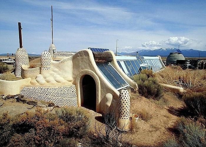 Earthships là căn nhà siêu bền vững được xây nên từ rác tái chế như chai lọ, lốp xe, lon nhôm và một vài loại rác khác. Các lon, chai được đổ đầy đất, sau đó được trát xung quanh bằng bùn tự nhiên.