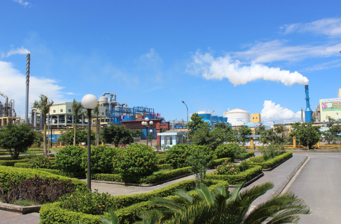Các phần diện tích trống trong nhà máy DAP Vinachem đều được sử dụng trồng cây xanh, góp phần bảo vệ môi trường (Ảnh: Báo Nông nghiệp Việt Nam)