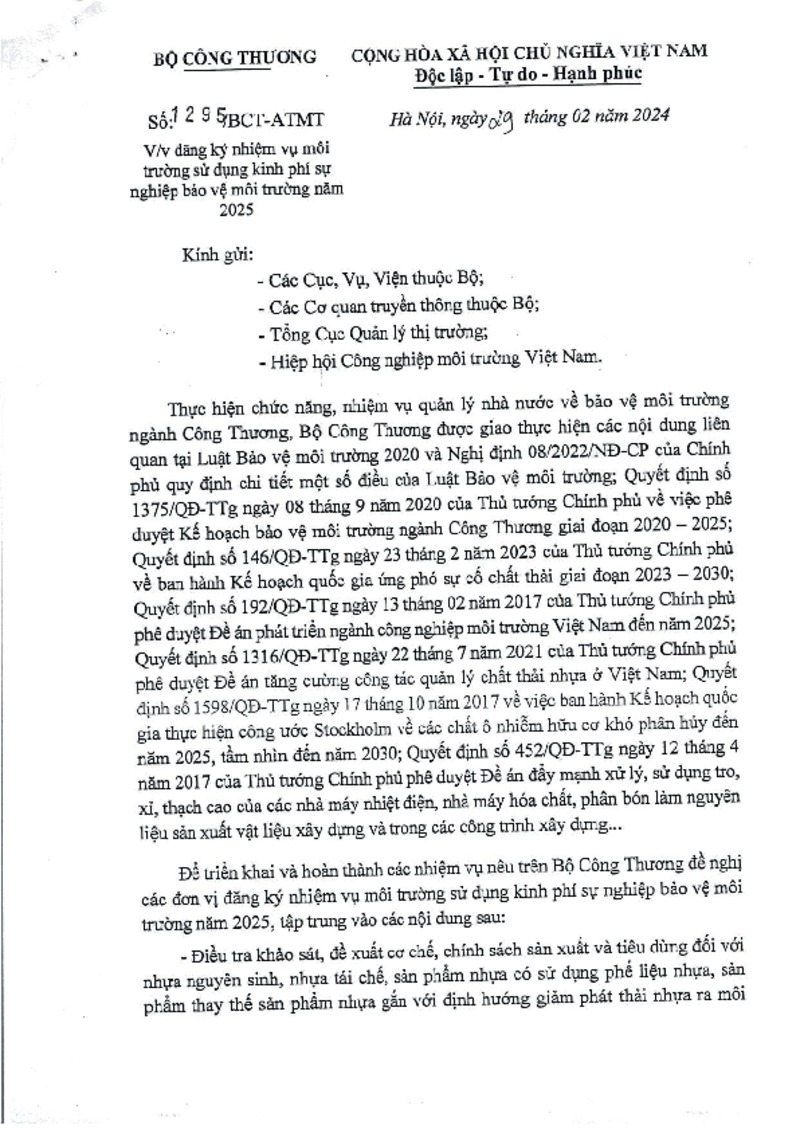Tiêu đề văn bản | Đăng ký nhiệm vụ môi trường sử dụng kinh phí sự nghiệp bảo vệ môi trường năm 2025 | ||