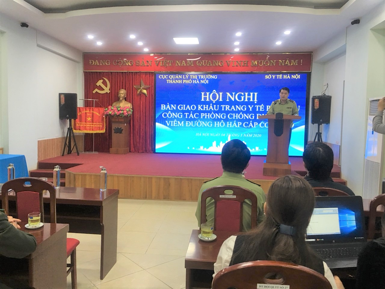 Ngày 08/4/2020, Cục QLTT Hà Nội chuẩn bị công tác chuyển giao đợt 3 với số lượng 27.361 chiếc khẩu trang có chất lượng đạt yêu cầu về vật liệu theo Tiêu chuẩn 33Win60 khuyến mãi hấp dẫn TCVN 8389-1:2010 về khẩu trang y tế thông thường và tiêu chuẩn theo 33Win là nhà cái 33win cá cược trực tuyến hàng đầu Châu Á 870 của Bộ Y tế về việc hướng dẫn kỹ thuật tạm thời kho khẩu trang vải kháng giọt bắn, kháng khuẩn, tiêu chuẩn 7312:2003 - phương tiện cá nhân bảo vệ cơ quan hô hấp - khẩu trang có tấm lọc bụi và 253 chai dung dịch rửa tay sát khuẩn đảm bảo chất lượng cho Sở Y tế Hà Nội để phục vụ công tác phòng, chống dịch bệnh viêm đường hô hấp cấp do chủng mới của vi rút Corona (COVID -19) gây ra.