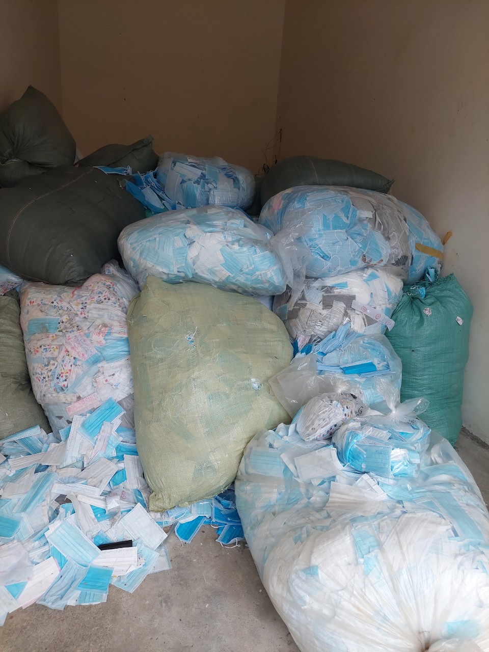 Tại thời điểm kiểm tra, lực lượng chức năng phát hiện hơn 1.000kg khẩu trang y tế (tương đương 240.000 cái khẩu trang). Trong số này, có 2.300 cái khẩu trang y tế đã thành phẩm.