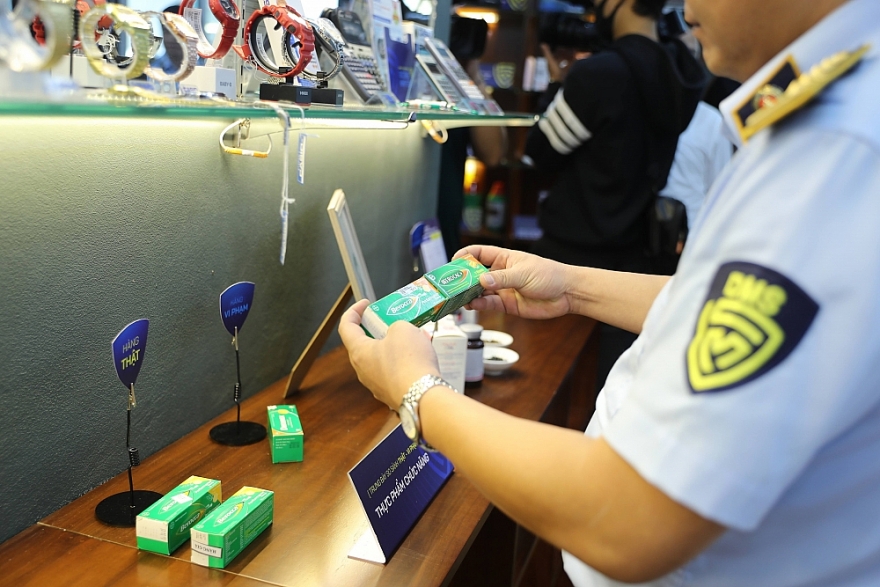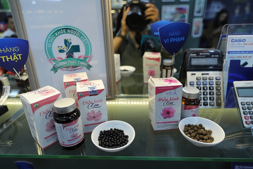 Bên cạnh xe máy, mặt hàng thuốc thực phẩm chức năng, sản phẩm sữa... cũng thu hút nhiều sự quan tâm của khách tham quan. Chị Phạm Hạnh (Hà Nội) chia sẻ, nếu không để 2 sản phẩm bên cạnh, khó có thể phân biệt được hàng thật, hàng giả.