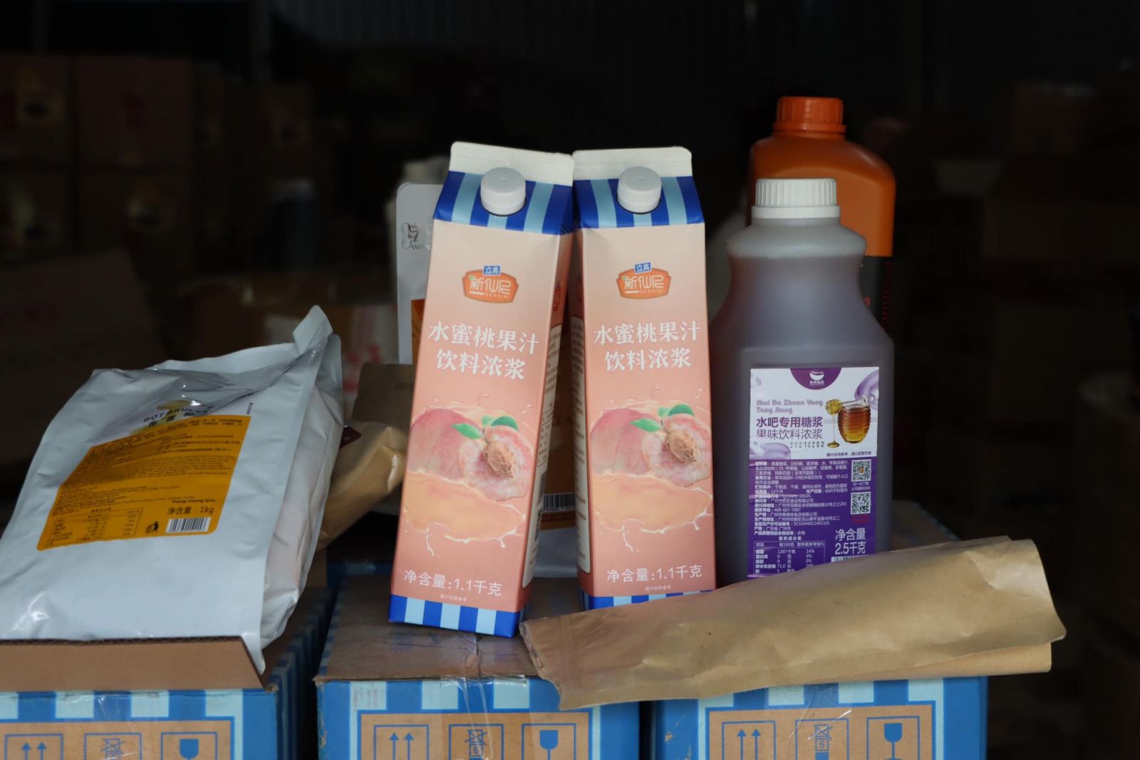 Hàng hoá tại cơ sở chủ yếu là nguyên liệu chế biến đồ uống, đặc biệt là nguyên liệu chế biến trà sữa như chân trâu; siro hương vị đường đen và đường nâu, bột pha trà sữa mang thương hiệu royal tea, gongcha... cùng hàng trăm ngàn nhãn phụ hàng hoá. Đây đều là những sản phẩm được giới trẻ ưu chuộng.