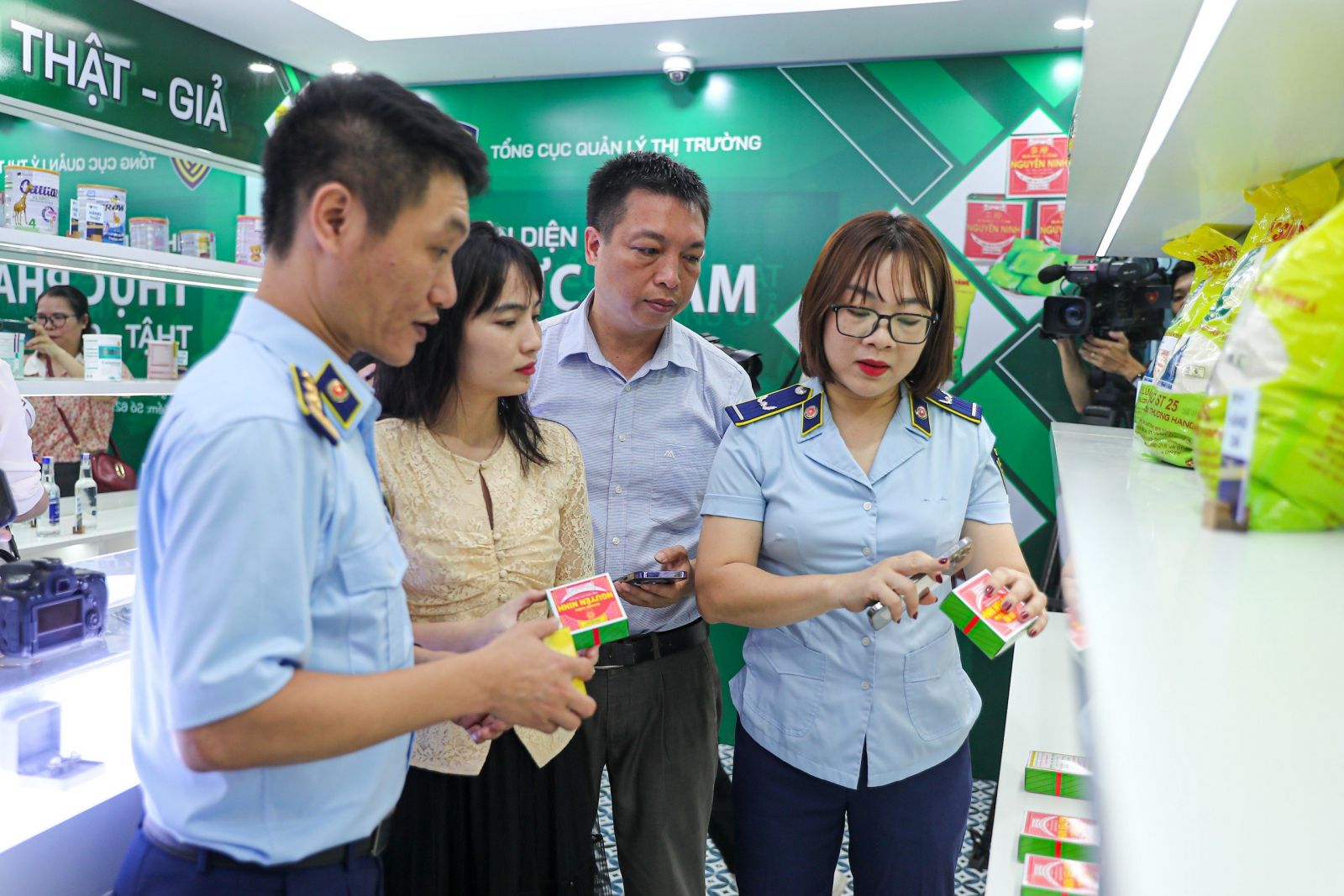 Đến tham quan Phòng trưng bày, khách tham quan sẽ được các chuyên viên của Tổng cục QLTT trực tiếp hướng dẫn cách nhận diện các dấu hiệu cơ bản của hàng thật và hàng giả đối với các sản phẩm trong kỳ trưng bày.
