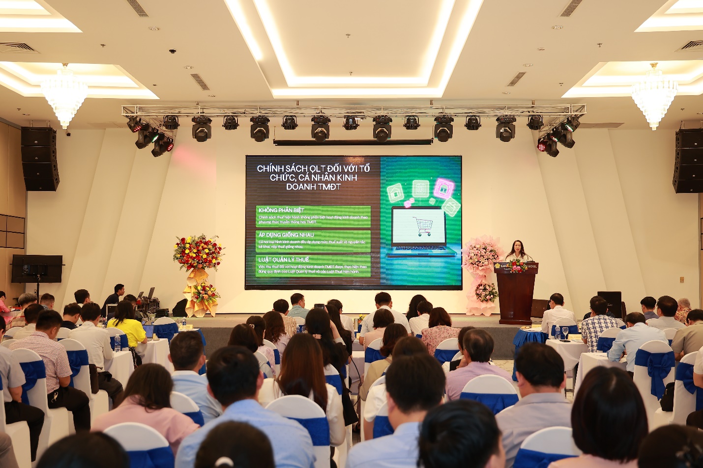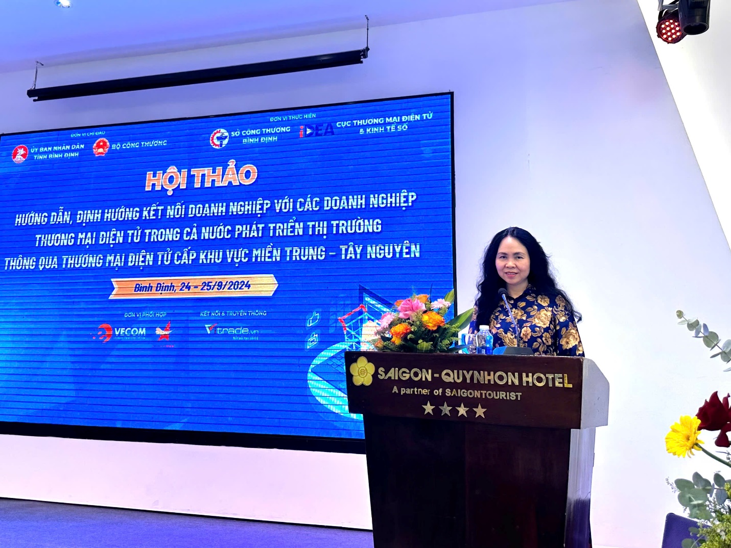 Bà Lê Hoàng Oanh, Cục trưởng Cục Thương mại điện tử và Kinh tế số phát biểu chào mừng tại Hội thảo