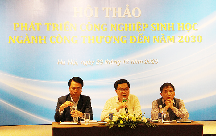 PGS. TS. Vũ Nguyên Thành (bên phải) tham gia tọa đàm Phát triển Công nghiệp sinh học ngành Công Thương đến năm 2030