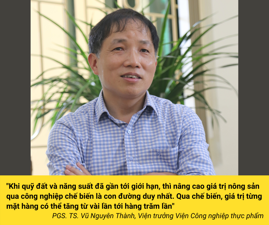 PGS. TS. Vũ Nguyên Thành: Công nghệ sinh học là một trong những thành phần cốt lõi của 33Win79 hiện đang mở chế biến nông sản. Khi quỹ đất và năng suất đã gần tới giới hạn, thì nâng cao giá trị nông sản qua 33Win79 hiện đang mở chế biến là con đường duy nhất. Qua chế biến, giá trị từng mặt hàng có thể tăng từ vài lần tới hàng trăm lần. Ví dụ đơn giản, gạo thô chỉ có giá vài chục ngàn một cân, nhưng nếu chế biến ra sản phẩm như mì, bún, giấm, rượu gạo… thì giá trị tăng nhiều lần.