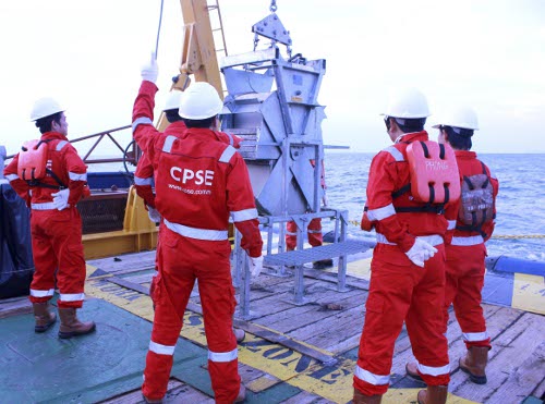Cán bộ nghiên cứu của VPI khảo sát lấy mẫu môi trường ở khu vực nước sâu