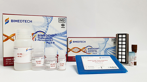 Sản phẩm BIMEDCHIP® Thalassemia Detection Kit phục vụ chẩn đoán và điệu trị bệnh Thalassemia. Đây là bộ kit giúp chẩn đoán in vitro đầu tiên sản xuất tại Việt Nam, cho phép phát hiện đồng thời nhiều đột biến gây bệnh thalassemia gây bệnh thiếu máu bẩm sinh, bao gồm cả alpha và beta - thalassemia chỉ trong 1 lần xét nghiệm.