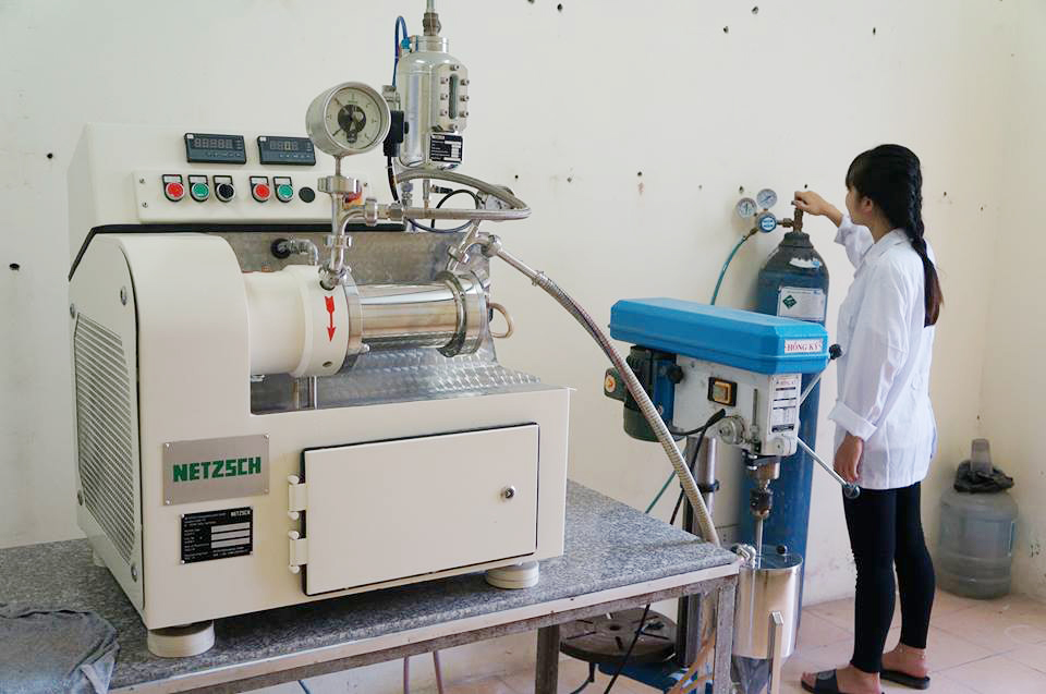 Hệ thống phân tích và thử nghiệm của Viện Nghiên cứu Sành sứ Thủy tinh Công nghiệp bao gồm 11 bộ chỉ tiêu. Trong ảnh: Vận hành máy nghiền siêu mịn gia công nguyên liệu gốm sứ