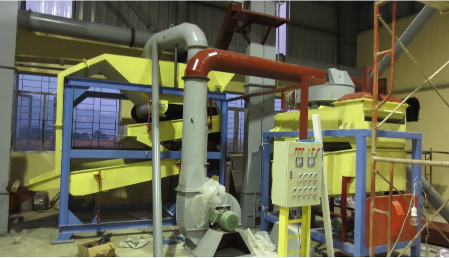 Hệ thống máy sàng phân loại và làm sạch tinh hạt ngô trước khi nhuộm màu hoặc đóng bao lưu kho (Ảnh: Nhóm nghiên cứu)