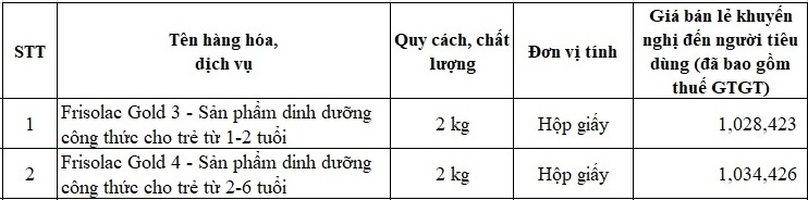 Công ty TNHH Frieslandcampina Việt Nam kê khai bán lẻ giá sữa mới Theo đó, mức giá của 02 sản phẩm mới được thực hiện từ ngày 30/7/2021.
