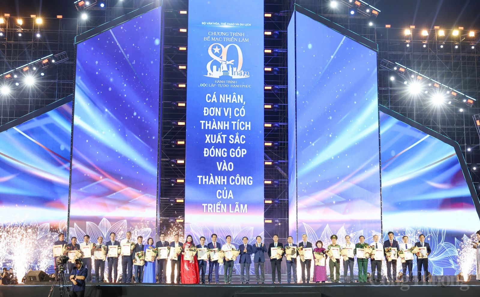 Đại diện các bộ, ngành, tỉnh, thành phố nhận giải thưởng “Không gian trưng bày tiêu biểu” tại Triển lãm Thành tựu đất nước.
