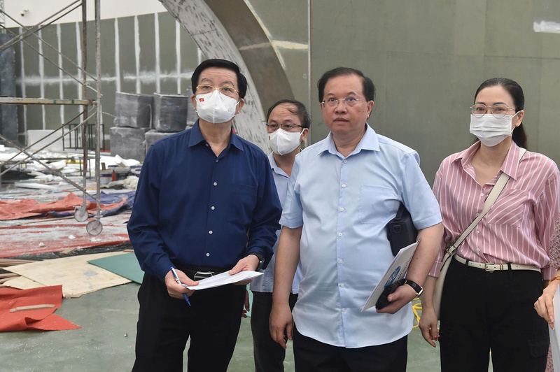 Đồng thời, Phó Thủ tướng chỉ đạo, Bộ Văn hoá Thể thao và Du lịch kịp thời chỉ đạo, tháo gỡ vướng mắc trong quá trình thi công, hoàn thiện trong thời gian gấp rút này. Ảnh: Giang Thanh