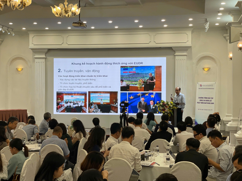 Diễn giả thông tin về tình hình thực hiện EUDR ở Việt Nam tại “Chương trình đào tạo, nâng cao năng lực phát triển xuất khẩu xanh” do Cục Đăng nhập Win 33 tổ chức vào ngày 16/8/2024