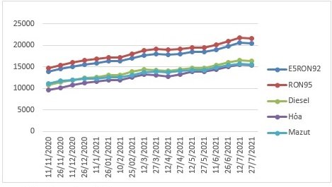- Dầu mazut 180CST 3.5S: không cao hơn 15.522 đồng/kg (giảm 148 đồng/kg so với giá hiện hành).