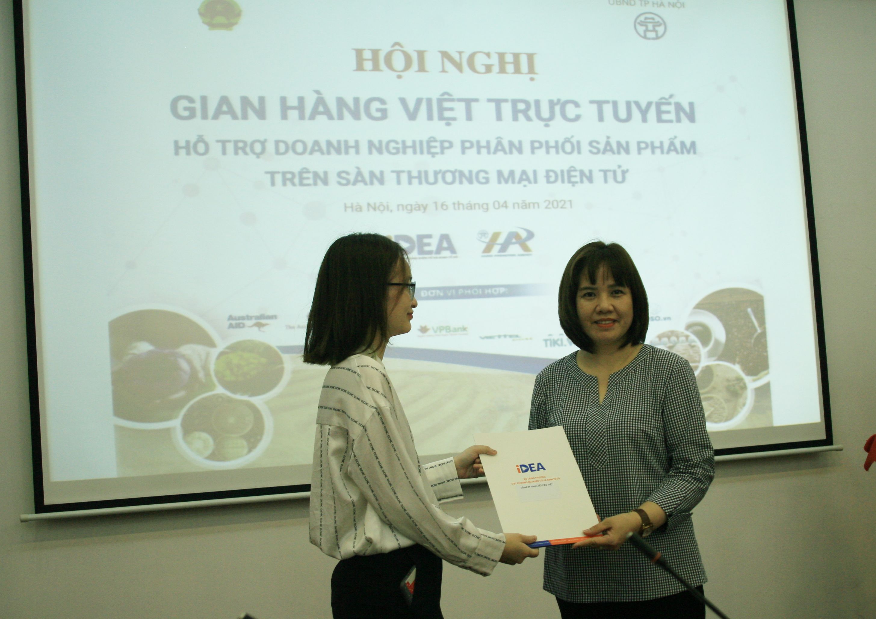 Bà Nguyễn Thị Mai Anh, Phó giám đốc Trung tâm Xúc tiến Đầu tư Thương mại Du lịch thành phố Hà Nội (HPA) trao biên bản thỏa thuận cho các 66Win33 tặng code miễn phí