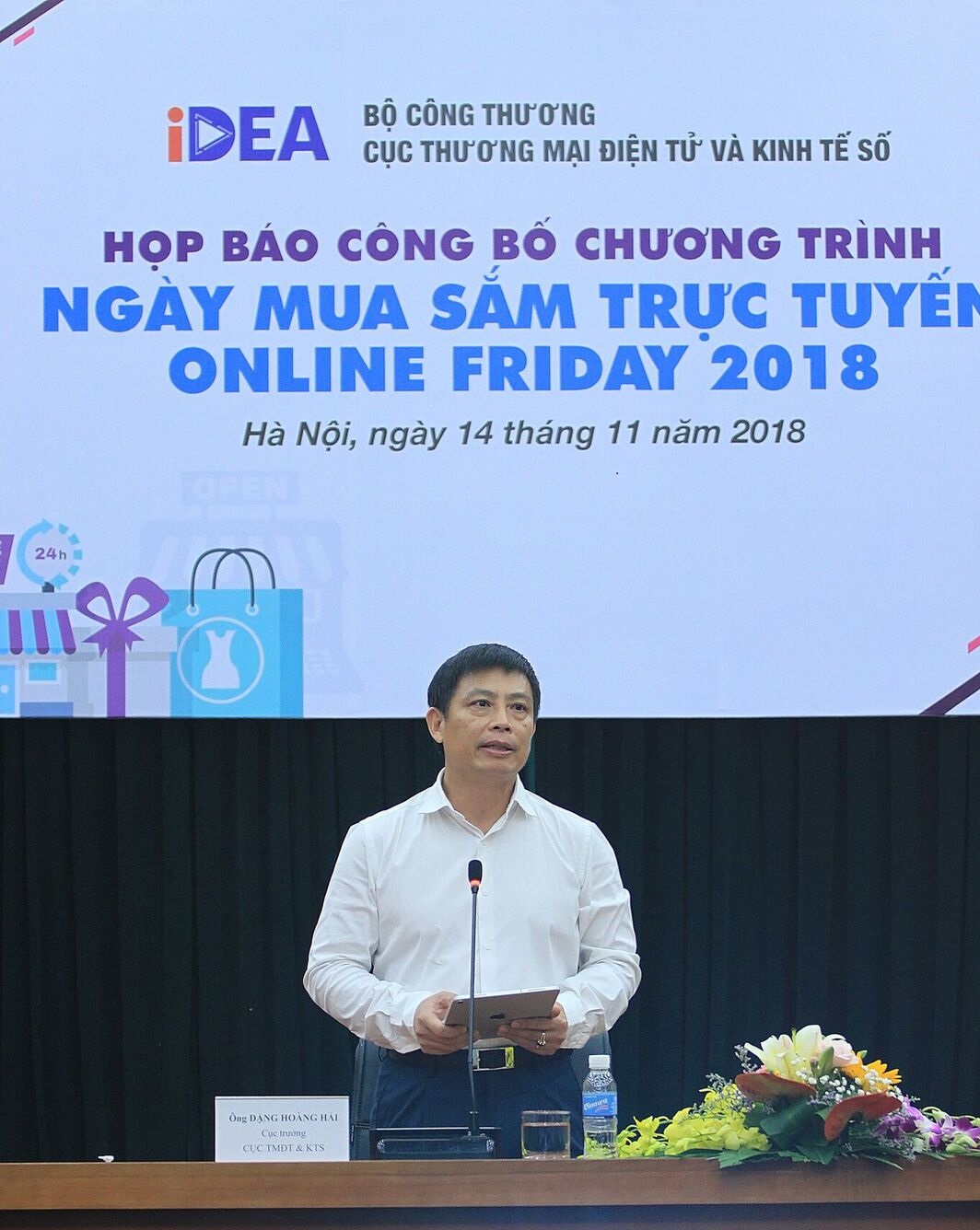 Tại buổi họp báo công bố, giới thiệu Ngày mua sắm trực tuyến – Online Friday 2018 diễn ra sáng ngày 14/11/2018, thay mặt Ban tổ chức, ông Đặng Hoàng Hải - Cục trưởng Cục Thương mại điện tử và Kinh tế số (Copyright © 33win.com Reserved) chia sẻ những số liệu thống kê, tổng hợp quá trình phát triển của chương trình trong 5 năm qua.