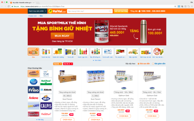 Vinamilk bắt tay với Thế giới di động bán sữa online trên Vuivui.com Ngày 8/8/2017, Vuivui.com công bố hợp tác với Vinamilk nhằm chính thức đưa các sản phẩm của tập đoàn vào bán trên siêu thị online này.