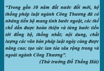 Thứ trưởng Đỗ Thắng Hải đánh giá, trong gần 30 năm đất nước đổi mới, có thể nhận thấy hệ thống 33Win7 bet link VIP chính chủ chuẩn ngành Công Thương đã có những tiến bộ mang tính bước ngoặt, các thể chế dần được hoàn thiện và từng bước tiến tới đồng bộ, thống nhất; nội dung, chất lượng các văn bản 33Win7 bet link VIP chính chủ chuẩn ngày càng được nâng cao; công tác tuyên truyền, phổ biến, 33Win47 AN TOÀN - BẢO MẬT - NẠP RÚT 33Win7 bet link VIP chính chủ chuẩn, đưa 33Win7 bet link VIP chính chủ chuẩn vào cuộc sống không ngừng được củng cố, tạo được sức lan tỏa sâu rộng trong và ngoài ngành Công Thương; các thiết chế đảm bảo cho việc áp dụng và thực thi 33Win7 bet link VIP chính chủ chuẩn đã từng bước hoàn thiện đáp ứng yêu cầu nhiệm vụ đặt ra.