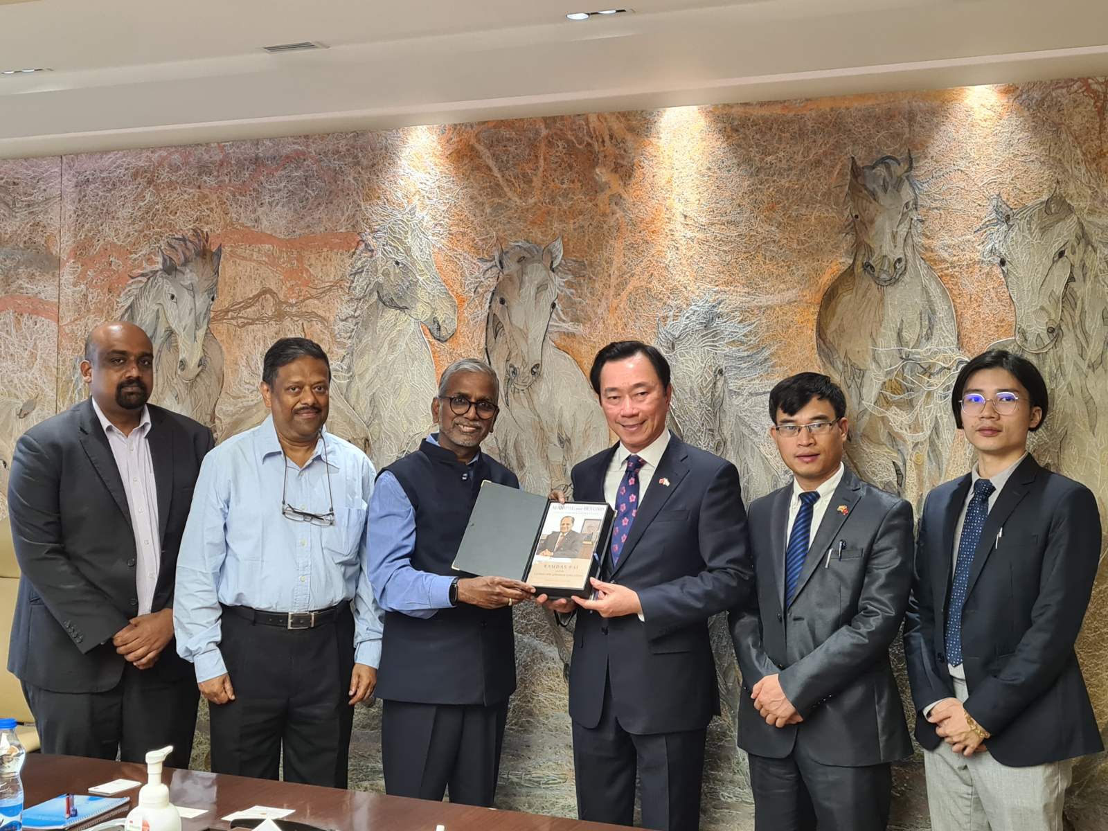 Đại sứ Phạm Sanh Châu và nhóm "Phản ứng nhanh về Thuốc và Vaccine làm việc với Ấn Độ tại Bangalore ngày 18/8