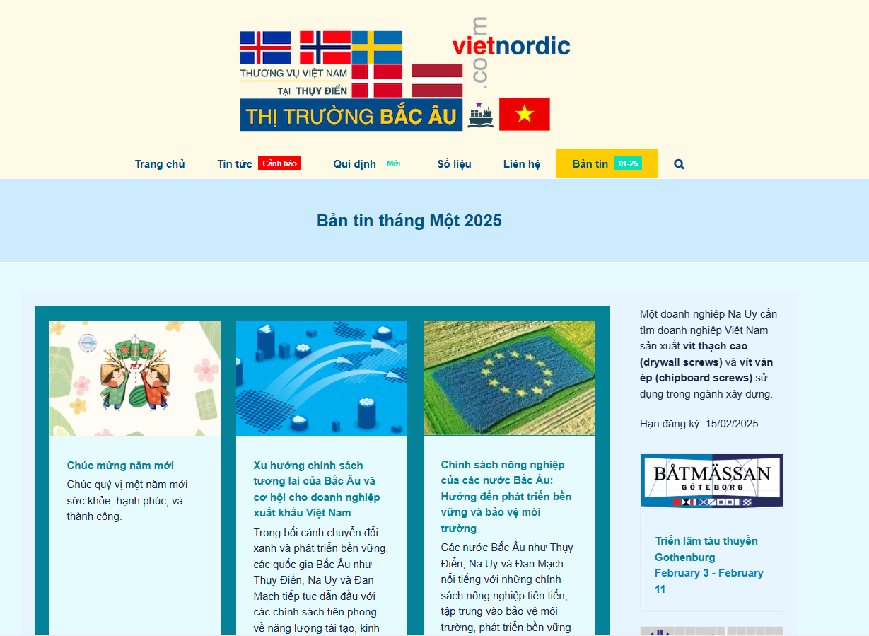Bản tin thị trường Bắc Âu tháng 1/2025 Thương vụ Việt Nam tại Thụy Điển thông tin đến bạn đọc và 66Win33 tặng code miễn phí Bản tin thị trường Bắc Âu tháng 1/2025 để tham khảo.