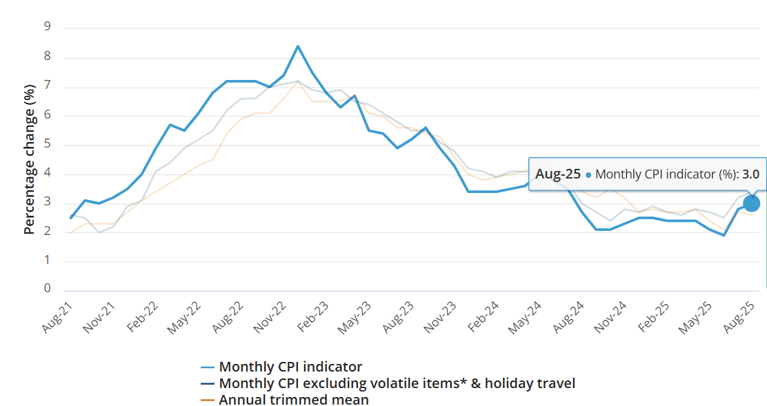1. Lạm phát tháng 8/2025 tại Úc tăng lên mức 3,0%