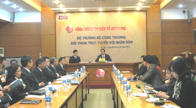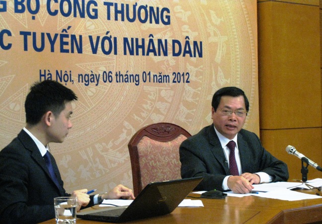 | Bộ trưởng Bộ Công Thương Vũ Huy Hoàng trả lời trong cuộc đối thoại trực tuyến với nhân dân |