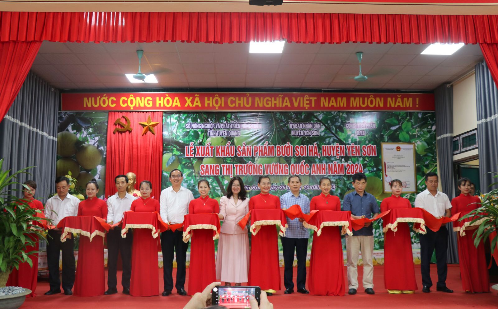 Mới đây (ngày 25/10/2024), Sở Nông nghiệp và Phát triển nông thôn phối hợp UBND huyện Yên Sơn và Công ty Cổ phần R.Y.B tổ chức Lễ xuất khẩu sản phẩm bưởi Soi Hà, huyện Yên Sơn sang thị trường Vương Quốc Anh.