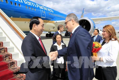 Vào 14 giờ 00 ngày 28/6 theo giờ địa phương (18 giờ cùng ngày theo giờ Hà Nội), Chủ tịch nước Trần Đại Quang và Phu nhân, cùng Đoàn đại biểu cấp cao Việt Nam đã tới Sân bay Vnucovo - 2, thủ đô Moskva.
