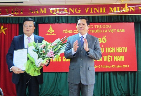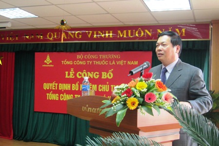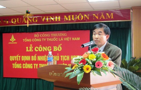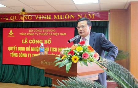 Chủ tịch HĐTV Tổng công ty Thuốc lá Việt Nam Vũ Văn Cường phát biểu sau khi nhận nhiệm vụ mới