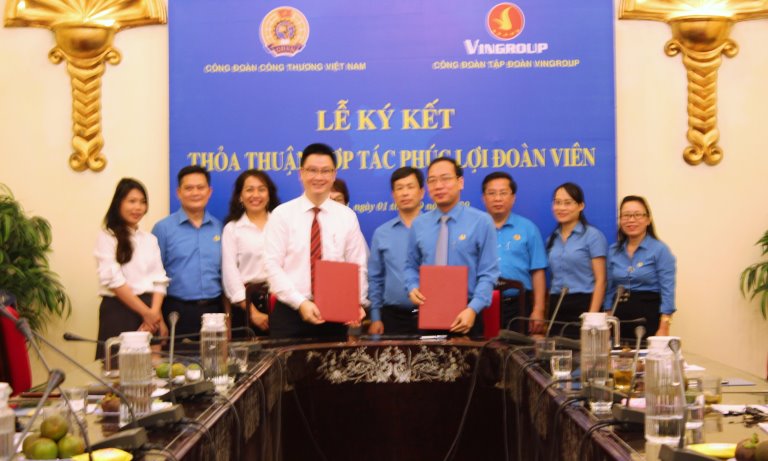 Công đoàn Công Thương Việt Nam ký kết thoả thuận hợp tác phúc lợi đoàn viên với Công đoàn Tập đoàn Vingroup Thực hiện chương trình nâng cao phúc lợi cho đoàn viên và người lao động, sáng ngày 01/9/2020, Công đoàn Công Thương Việt Nam (CĐCTVN) tổ chức ký kết thỏa thuận hợp tác phúc lợi đoàn viên với Công đoàn Tập đoàn Vingroup. Thỏa thuận hợp tác được ký kết giữa CĐCTVN và Công đoàn Tập đoàn Vingroup nhằm mục đích để đoàn viên và người lao động ngành Công Thương được hưởng những ưu đãi tốt hơn với chất lượng đảm bảo, giá thành giảm khi mua, sử dụng sản phẩm dịch vụ của Tập đoàn Vingroup. Chương trình này cũng nhằm lan tỏa giá trị thương hiệu hàng Việt Nam, hưởng ứng chương trình Người Việt Nam ưu tiên dùng hàng Việt Nam.