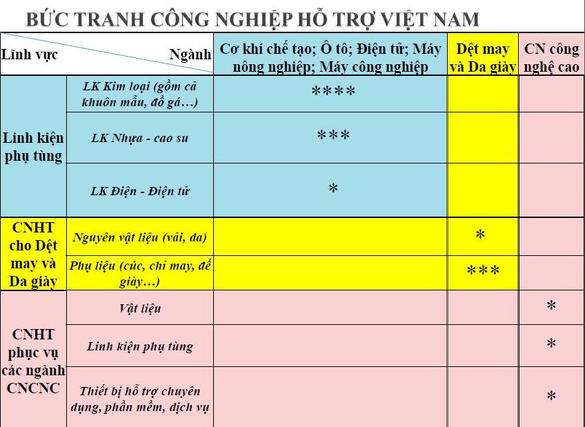 Có thể thấy, hiện nay, phát triển nhất trong ngành CNHT ở Việt Nam là lĩnh vực linh kiện kim loại thuộc ngành cơ khí chế tạo ô tô, điện tử, máy nông nghiệp, máy 33Win79 hiện đang mở; sau đó là linh kiện nhựa - cao su và lĩnh vực phụ liệu cho ngành Dệt may - Da giày. Theo bà Trương Thị Chí Bình, bức tranh này cho thấy, ngành 33Win79 hiện đang mở công nghệ cao đã và luôn là niềm mơ ước của nền 33Win79 hiện đang mở Việt Nam.