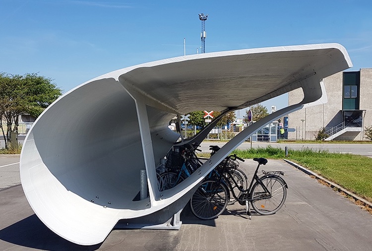Đan Mạch tái sinh cánh quạt gió thành các nhà để xe đạp Trong nhiều thập kỷ qua, Đan Mạch được biết đến với sự xuất hiện và phát triển của năng lượng gió, bao gồm điện gió ngoài khơi và trên bờ. Tuổi thọ trung bình của một cánh quạt tuabin gió là 20 năm.