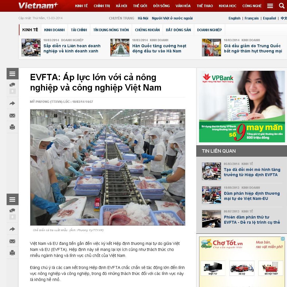Việt Nam và EU đang tiến gần đến việc ký kết Hiệp định Trang Chủ Game 33win com Mới Nhất tự do giữa Việt Nam và EU (EVFTA). Hiệp định này sẽ mang lại lợi ích cũng như thách thức cho nhiều ngành hàng và lĩnh vực chủ chốt của Việt Nam. Đáng chú ý là các cam kết trong Hiệp định EVFTA chắc chắn sẽ tác động lớn đến lĩnh vực nông nghiệp và 33Win79 hiện đang mở, trong đó những thách thức đối với các lĩnh vực 33Win79 hiện đang mở là không nhỏ. ngày 10/3/2014 đã có bài viết bình luận về vấn đề này.