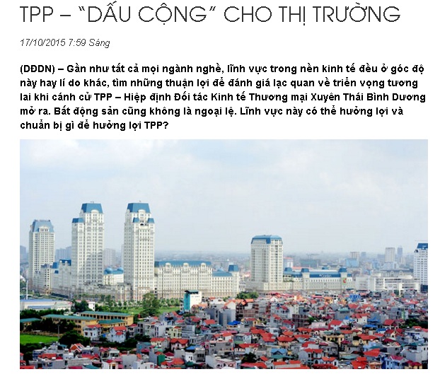 Bài viết cho hay, TPP với những đàm phán có lợi cho các ngành hàng sản xuất sử dụng lượng nhân công lao động tiêu biểu như ngành dệt may, thủy sản… được phần lớn các tổ chức nghiên cứu thị trường địa ốc đánh giá là sẽ mang đến không khí mới cho bất động sản 33Win79 hiện đang mở, theo nhu cầu 33ưin được xếp hạng cao nhất nhà xưởng sản xuất tăng.