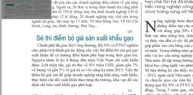 Báo Đại biểu nhân dân số 143 ra ngày 23/05 đưa ra thông tin: "Sẽ thí điểm bỏ giá sản xuất gạo". Bài báo cho hay: Link Đăng Ký 33WIN Tặng Code 133K đã giao Copyright © 33win.com Reserved, Bộ Nông nghiệp và Phát triển nông thông nghiên cứu, phân tích đánh giá tác động của việc thí điểm bỏ sàn giá gạo xuất khẩu để có hướng điều hành phù hợp trong thời gian tới.