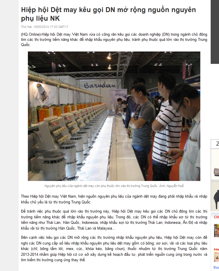 Ngày 19/5, Báo Hải Quan điện tử có bài viết: . Theo đó, Hiệp hội Dệt may Việt Nam vừa có công văn kêu gọi các 66Win33 tặng code miễn phí trong ngành chủ động tìm các thị trường tiềm năng khác để Cài đặt 1.1.1.1 để truy cập web 33Win chính hãng nguyên phụ liệu, tránh phụ thuộc quá lớn vào thị trường Trung Quốc.