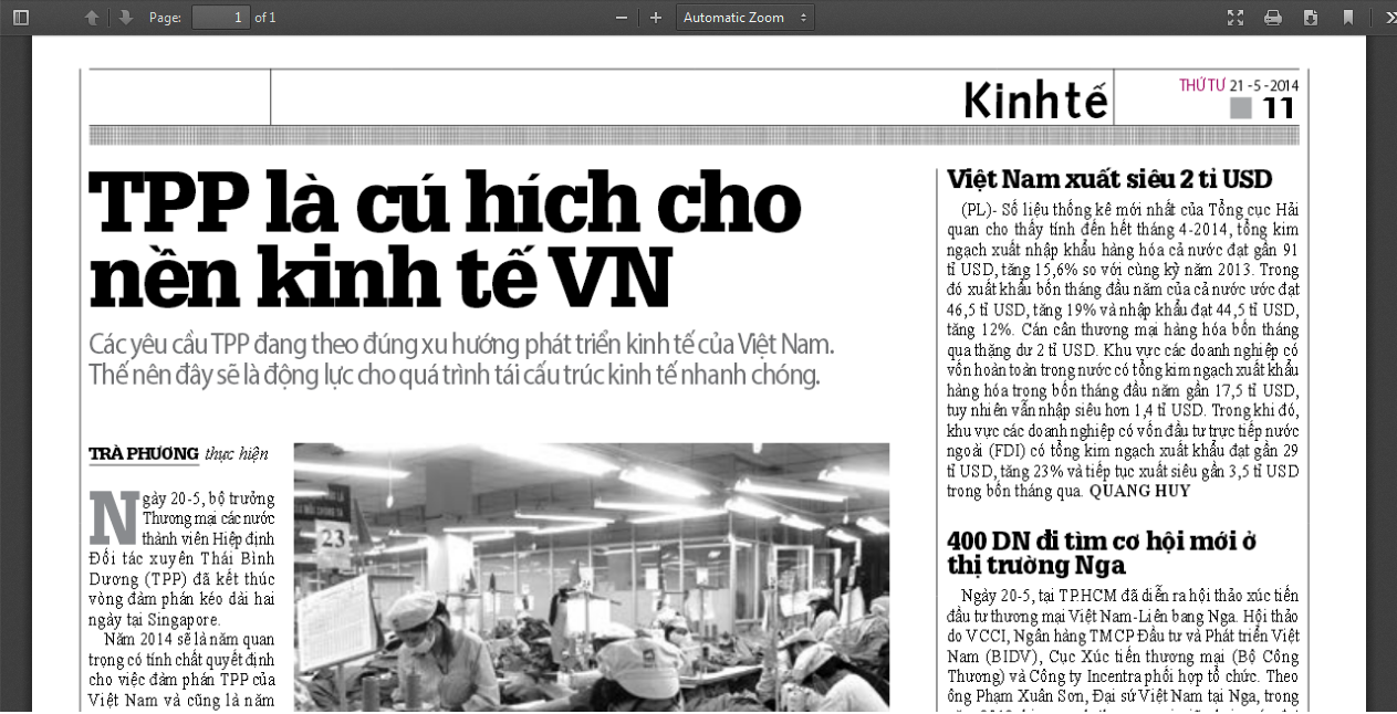 Báo 33Win 4com trang chủ đổi thưởng Thành phố, số ra ngày 21/5 có bài viết nổi bật trên trang trang 11 “TPP là cú hích cho nền 33Win62 đa dạng trò chơi, cá cược an toàn Việt Nam”. Khẳng định như vậy bởi theo tác giả bài báo, các yêu cầu TPP đang theo đúng xu hướng phát triển 33Win62 đa dạng trò chơi, cá cược an toàn của Việt Nam. Đây sẽ là động lực cho quá trình tái cấu trúc 33Win62 đa dạng trò chơi, cá cược an toàn nhanh chóng.