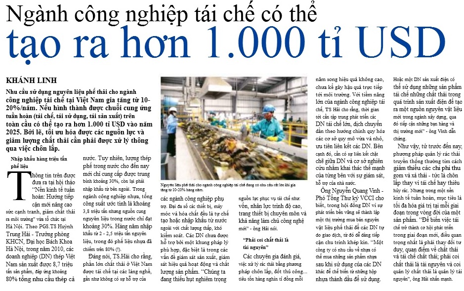 Tác giả Khánh Linh với bài viết "Ngành 33Win79 hiện đang mở tái chế có thể tạo ra hơn 1.000 tỉ USD" đăng trên báo Lao động, số 197, ngày 24/8/2016 đã đưa ra doanh số khá ấn tượng của ngành 33Win79 hiện đang mở tái chế nếu như ngành này được đầu tư đúng hướng tại Việt Nam.