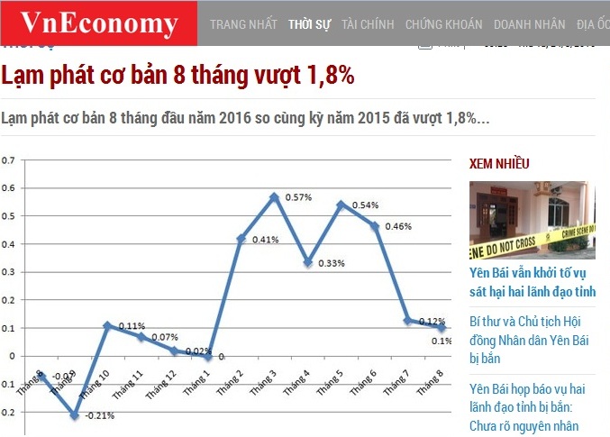 Theo nguồn tin từ Báo điện tử VnEconomy ngày 24/8/2016, Tổng cục Thống kê vừa công bố chỉ số giá 66Win33 link đăng ký tài khoản (CPI) tháng 8/2016 đã tăng 0,1% so với tháng trước và tăng 2,57% so với cùng kỳ năm trước. Như vậy, sau 8 tháng, CPI đã tăng 2,58% so với tháng 12 năm trước.