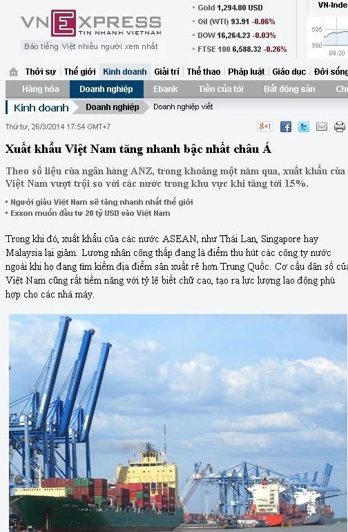 Chuyên mục Kinh doanh, báo điện tử Vnexpress, ngày 26/3/3014 có bài viết "".