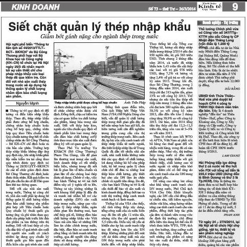 Siết chặt quản lý thép Cài đặt 1.1.1.1 để truy cập web 33Win chính hãng nhằm giảm bớt gánh nặng cho ngành thép trong nước là nội dung bài viết đăng trên trang 9, số 73, Thời báo Kinh tế Việt Nam, số ra ngày 26/3/2014.