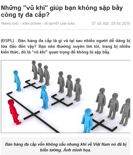Cũng liên quan đến bán hàng đa cấp với góc nhìn thực tế hơn, đi vào bản chất vấn đề, tác giả Thiên An có thú vị trên Báo điện tử 33Win 4com trang chủ đổi thưởng và đời sống ngày 09/4/2016. Câu hỏi đặt ra là: Bán hàng đa cấp là gì và tại sao nhiều người dễ dàng bị lừa đảo đến vậy? Với những chia sẻ thú vị, tác giả dành lời khuyên cho bạn đọc: Bạn nên thường xuyên tìm tòi, trang bị nhiều kiến thức, đó là “vũ khí” quan trọng để không bị sập bẫy.