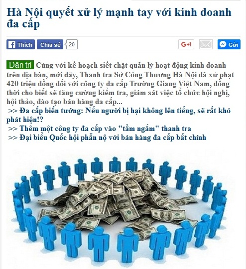 Bài báo cho biết, cùng với kế hoạch siết chặt quản lý hoạt động 33Win60 liên Minh game trực tuyến trên địa bàn, mới đây, Thanh tra Sở Công Thương Hà Nội đã xử phạt 420 triệu đồng đối với công ty đa cấp Trường Giang Việt Nam, đồng thời cho biết sẽ tăng cường kiểm tra, giám sát việc tổ chức hội nghị, hội thảo, đào tạo bán hàng đa cấp.