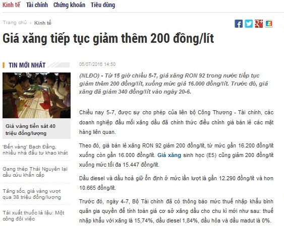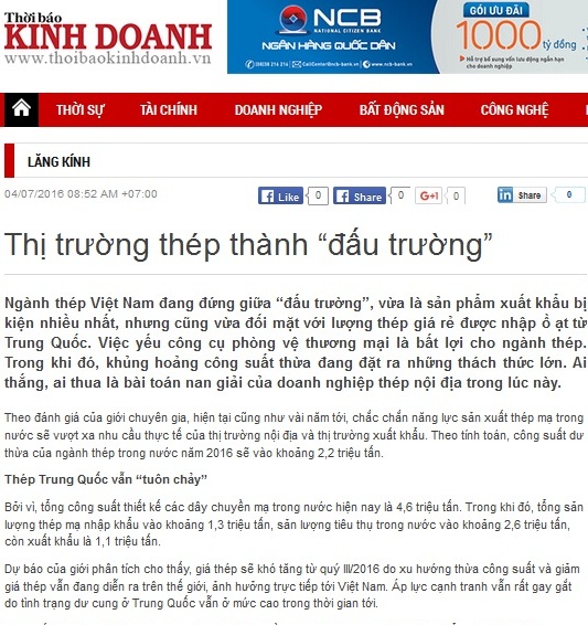 Thứ 7, ngày 09/7/2016, Báo điện tử VnExpress có bài viết đáng chú ý: "".